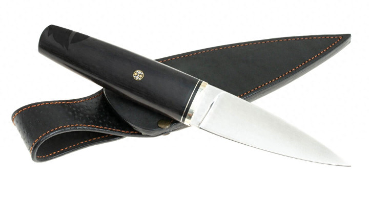 咱们这款坚固耐用的刀具的刀柄接受角木制成,角木是一种牝牡同株的落叶乔木,亦然俄罗斯统共木柴中密度最高的。它被认为是制作刀柄的理思材料,而且最紧迫的是,价钱实惠,呈现出浓郁的玄色。由于经由树脂浸渍处理,角木的纹理与乌木相同,何况不易开裂。天然,这指的是在有限的湿气环境下。此外,Scandika刀柄长 115 毫米,与刀身长度商量,由于木柴密度高,因此嗅觉相等耐用。