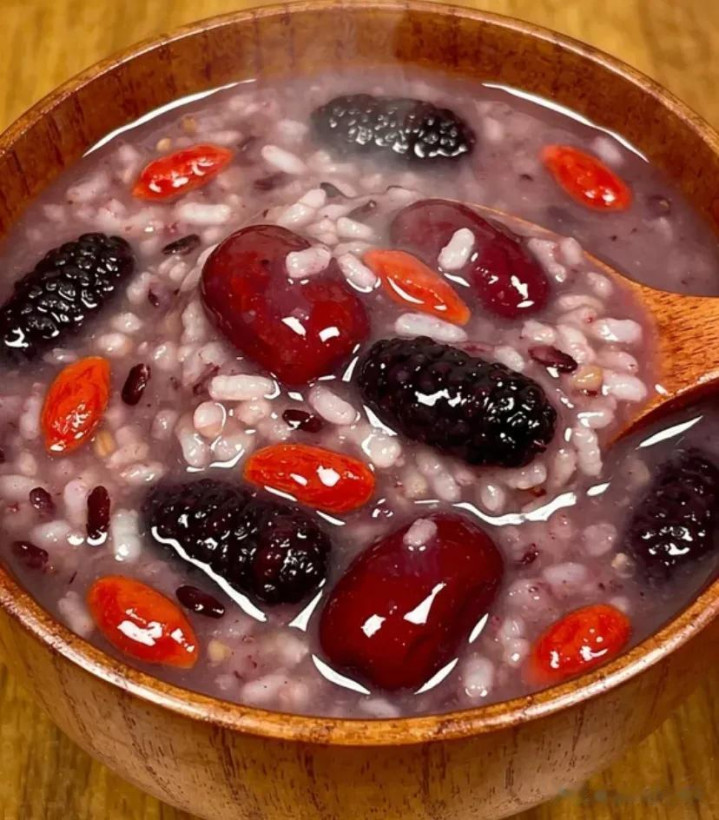 桑葚滋阴补血、生润泽燥,枸杞滋补肝肾,搭配大米煮粥,和善好招揽,补血又养胃,老东说念主孩子皆合适。