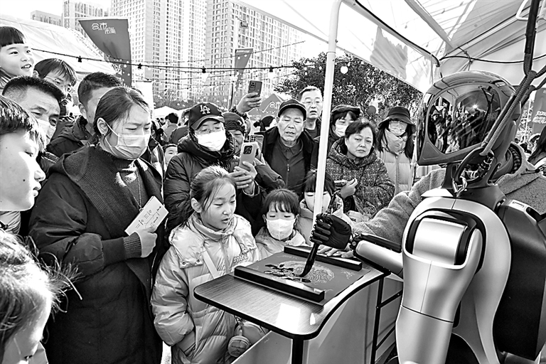 安徽合肥2026首届新春游园会上,机器东说念主为搭客写对联。光明图片/视觉中国