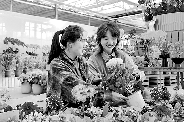 新春将至,市民在河南济源联洋花草市场选购花草。新华社发