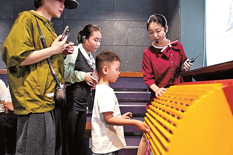 吉林省长春市,小一又友在长影原址博物馆拟音互动室参不雅体验。新华社发