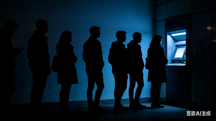 凌晨少量,24小时自助银行里,五个东说念主肃静列队取钱。