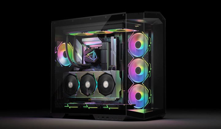 散热是这款微星MPG VELOX 300R AIRFLOW PZ刀锋300R机箱的中枢上风,其预装2把160mm ARGB前置双层环刃电扇与1把120mm尾部电扇,内环扇叶集聚气流、外环扇叶褂讪风说念并镌汰杂音,同期支柱H/M/L三档转速物理转念,兼顾性能与静音需求。机箱支柱最多13把电扇位与三处360mm冷排装配空间,可同期容纳双360冷排的组合,前置EZ可转念支架还能兼容160mm双扇、140mm三扇等多种电扇决议,以至可装配分体水冷的水箱或分流板;五面透风的风说念布局,互助顶部、底部、前部的可拆卸防尘网,既能最大化散热后果,又有用幸免灰尘堆积。