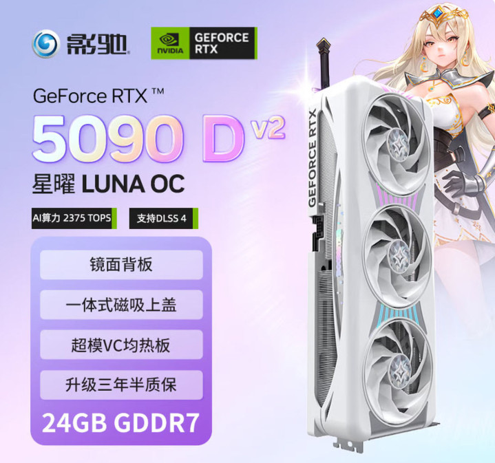 显卡动作AI作图和游戏的中枢硬件,平直决定了渲染速率和游戏画质,关于纯白全家桶来说,显卡实足弗成缺乏,我给这套建立搭配的是影驰GeForce RTX 5090 D v2 星曜 LUNA OC 24G旗舰显卡,它基于NVIDIA Blackwell架构,内置21760个CUDA中枢并搭载24GB GDDR7高速显存,凤凰彩票支柱DLSS 4技能与第四代光追中枢,八成即兴足下8K游戏、重度AI创作及复杂3D渲染任务;外不雅打算上,LUNA版块以“月之女神”为灵感,遴荐亮白色搭配银灰色的细雾面外壳与全白金属背板,呈现温润清雅的圆弧流线造型,更首创了“磁星Ultra”散热系统,通过私有的磁吸式上盖结构让用户无需器具即可方便拆卸清灰或DIY改装,互助可同步神光的ARGB穹顶灯效与42个月超长质保,不仅确保了强悍的散热着力与驱动褂讪性,更成为白色主题“海景房”主机中兼具信仰颜值与巅峰性能的实足中枢。