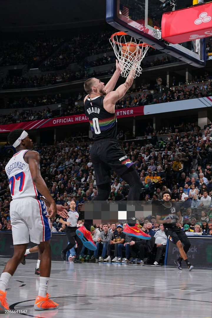 克里斯蒂安·布劳恩,他是个后卫,也可以打时尚。他相频年青,是掘金队2022年选中的球员,随着球队在2023年拿到了总冠军。今天他是掘金队得分最多的球员,拿了22分,还抢了5个篮板球,送出了3次助攻。比赛一开动他就打得卓绝猛,第一节就一个东谈主得了12分,匡助球队早早登程点。他今天投篮很准,冲破上篮也很犀利,是球队赢球的大元勋。他现象火热,充满了活力。