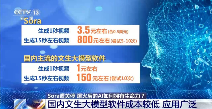 而咱们从用户的使用资蓝本策划不错发现,Sora每生成一秒视频,用户需要支付0.5好意思元,折合东谈主民币约3.5元;生成一段15秒傍边的理念念镜头则需要尝试5~10次,合东谈主民币约800元。而使用国内主流的文生大模子软件每生成一秒的视频,资本只需要1元傍边,即使是尝试生成10次15秒傍边的镜头,也只需要150元傍边的资本,资本独一Sora的五分之一不到。