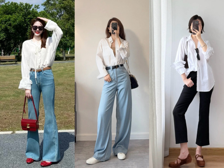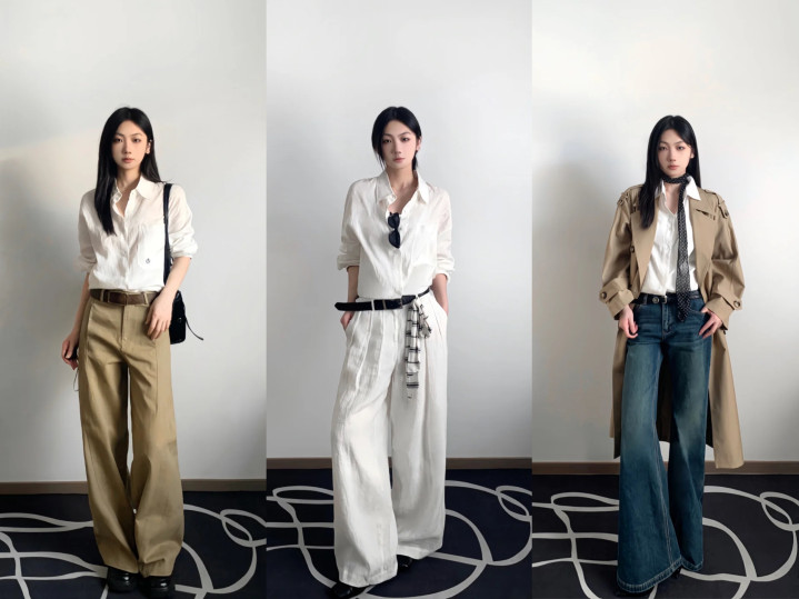诚然,最常见的便是塞下摆穿法,可以打造高腰线,单穿更显利落,搭配外衣时,比如长款风衣,将衬衫下摆塞进裤腰,下半身衔尾高腰牛仔微喇裤,气质异常的高等优雅。