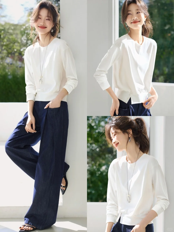 版型选择:修身版适配合为内搭,小西装、风衣都可以匹配,宽松版遮肉服从好,符合单穿。