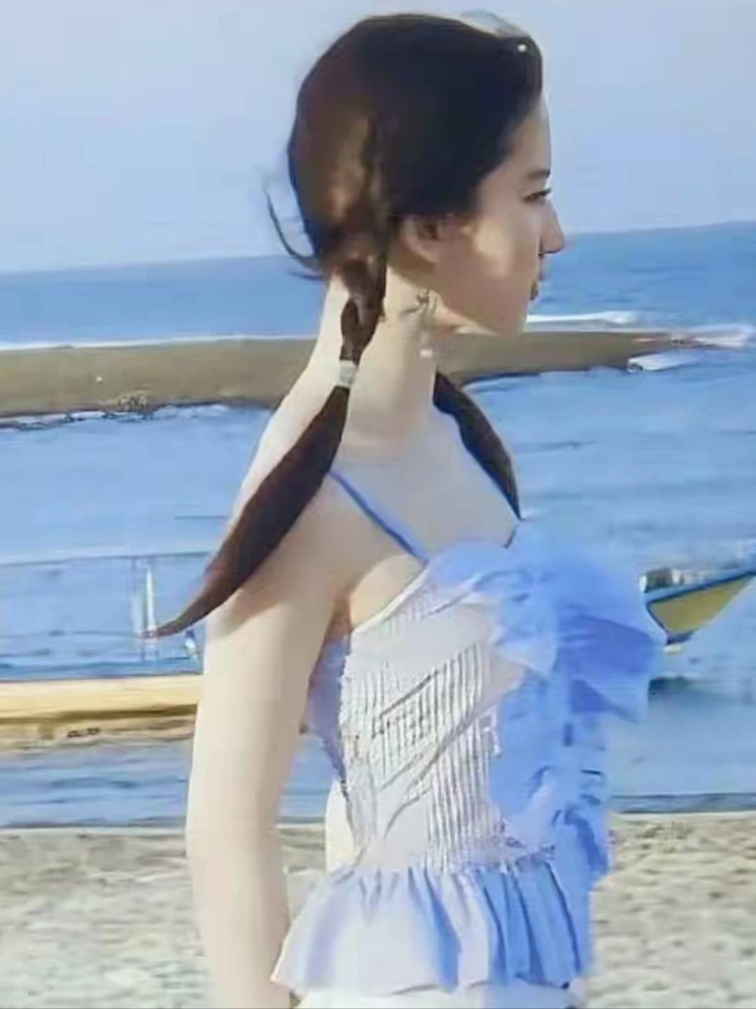 最近一组刘亦菲十七八岁时的海边旧照倏地在酬酢平台刷屏,像片里的她穿戴疏忽的白色T恤和短裤,赤着脚踩在沙滩上笑得一脸灿烂。阳光把她的皮肤晒成健康的小麦色,小腹受骗然超越的赘肉在无滤镜镜头下相配简直,王人备颠覆了群众对“至人姐姐”零赘肉的完整念念象。这组像片最早拍摄于2005年傍边,其时刚凭借《金粉世家》和《神雕侠侣》走红的刘亦菲,还带着未脱的婴儿肥,镜头里的她莫得高超妆容,长发被海风吹得凌乱,却透着一股原生态的灵气。