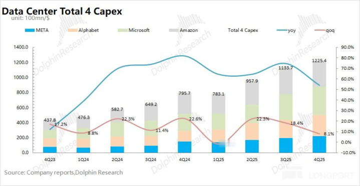聚会各家大厂提醒,海豚君权衡四大中枢云厂商(谷歌、Meta、微软和亚马逊)的悉数本钱开支在 2026 年有望达到 6600 亿好意思元,同比增速达到 60% 以上,为 AI 芯片市集在 2026 年的增长提供了保险。