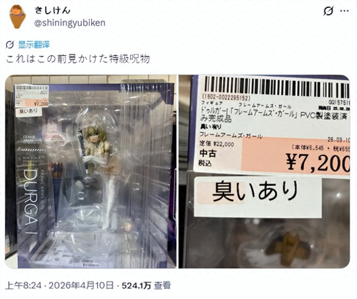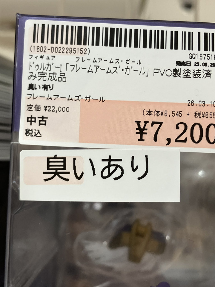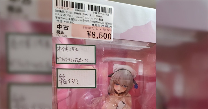 日本一家模子二手店,上架了一款原价 22,000日元 的PVC模子,后果价钱也曾胜利打了三折,只卖 7,200日元,原因在其外盒上写了,因为这款手办「有臭味」