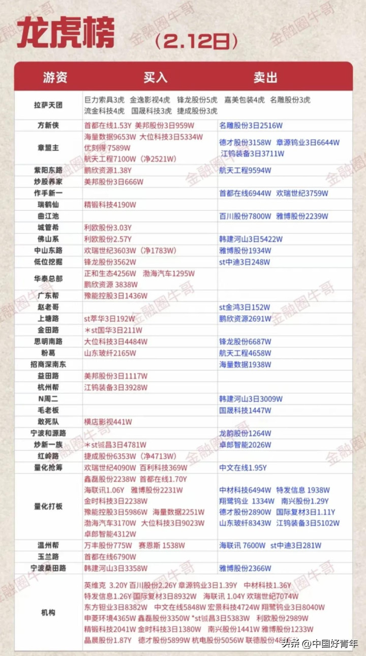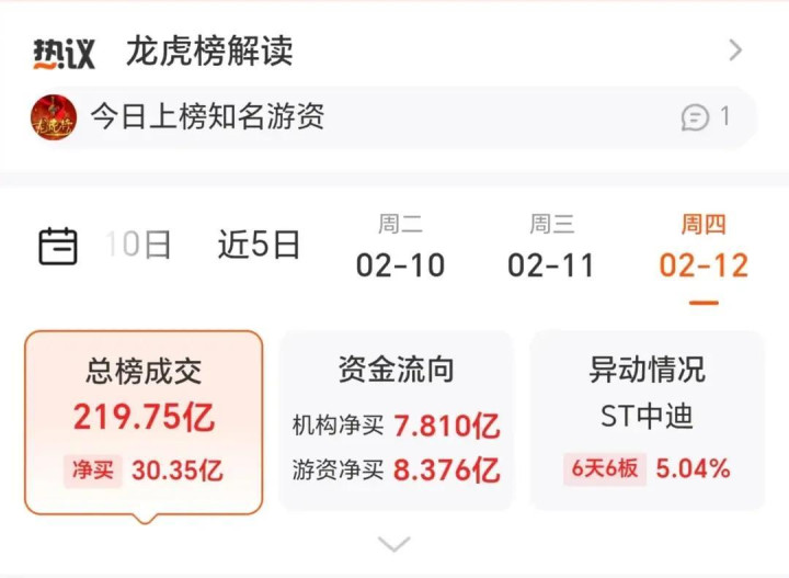 一、2月12日游资龙虎榜全景复盘:主力资金火力全开,情谊全面回暖