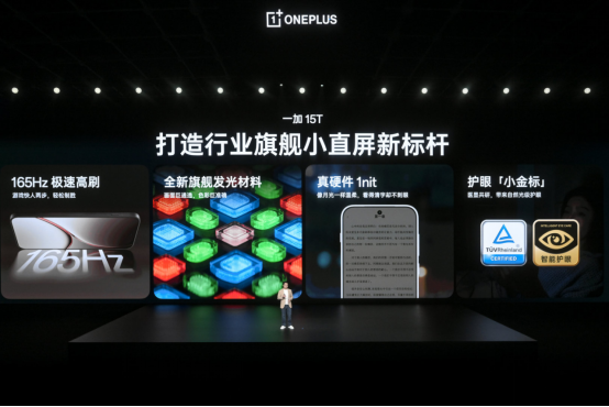 顶级的自大素质除外,一加 15T 还搭载医显共研的全新「明眸护眼」期间,凭借硬件级低蓝光、至低 0.04 SVM 的行业跳动低频闪以及 AI 距离教唆、晕动顺心、节律舒眠等七大 AI 主动护眼功能,得胜斩获小屏界限独一的护眼「小金标」认证,成为小屏护眼新标杆,不管始终间游戏或阅读浏览,眼睛也能保持忻悦。