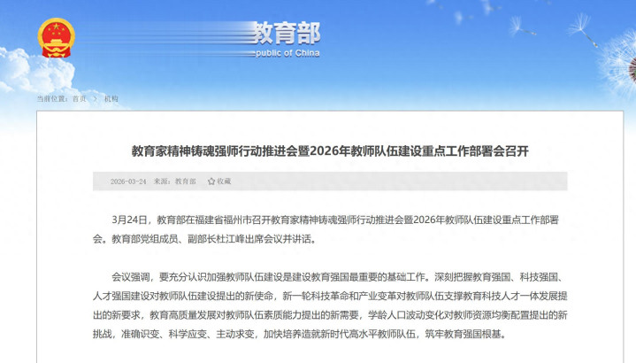 2026年3月5号的政府责任叙述空口无凭写着"发达教练家精神,缔造高教诲专科化教师队列,强化教师待遇保险"。紧接着3月24号,教练部在福州有利开了一场部署会,副部长躬行到场,主题等于2026年教师队列缔造要点责任。会上明确提倡,学龄东说念主口波动变化对教师资源平衡建树提倡了全新挑战。